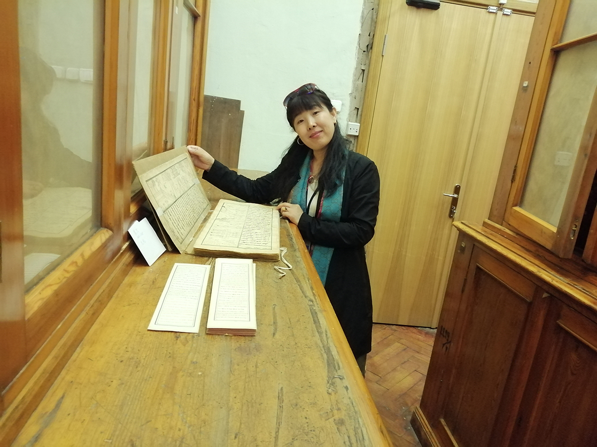 会议期间,包乌云教授到圣彼得堡国立大学蒙古学研究中心资料室收集了蒙古文、托忒文、满文等古文字文献资料,还实地考察了世界著名的艾尔米塔什博物馆藏现存回鹘式蒙古文文献中最早的、写于公元1225年的《成吉思汗石文》(也叫《也松格碑文》)及八思巴蒙古文令牌等蒙元时期的珍贵文献,为中古蒙古语文献和蒙古古文字文献研究获得了详实珍贵的资料。