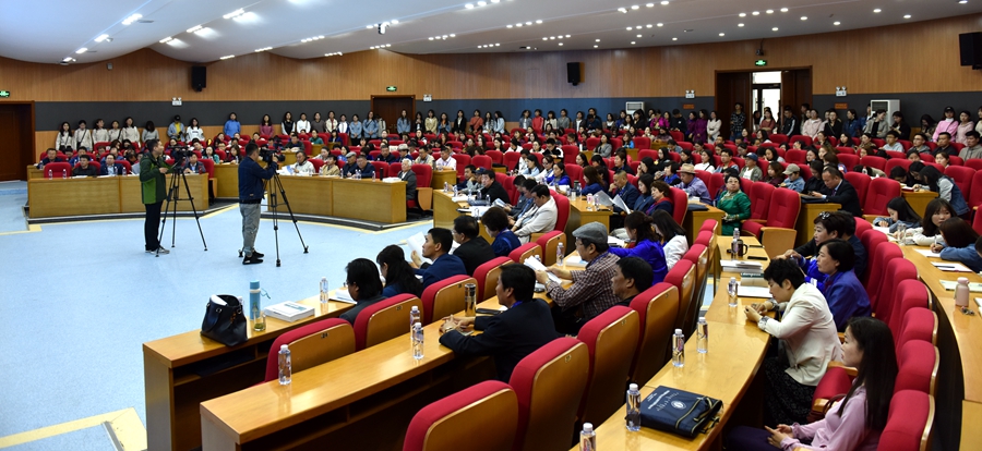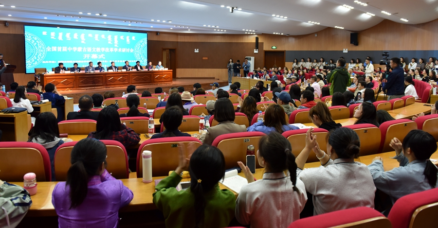 5月11日,由ac米兰官方网站主办,蒙古语言文学系承办的“全国首届中学蒙古语文教学改革学术研讨会”在ac米兰官方网站盛乐校区举行。本次研讨会旨在贯彻落实《国家中长期教育改革和发展规划纲要(2010-2020)》、《中国教育现代化2035》和全国教育大会的精神,进一步推进中学蒙古语文课堂教学改革,切实提高中学蒙古语文教学质量,探索中学蒙古语文教学的新理念、新思路和新途径。来自全国八省区、各盟市、旗县教育局教研室蒙古语文专职研究员,中学蒙古语文学科带头人、教学能手,高校蒙古语言文学专业教研人员、研究生、本科生,以及来自人民网、新华网、内蒙古日报社、内蒙古广播电视台、内蒙古新闻网等媒体记者200余人参加了本次研讨会。