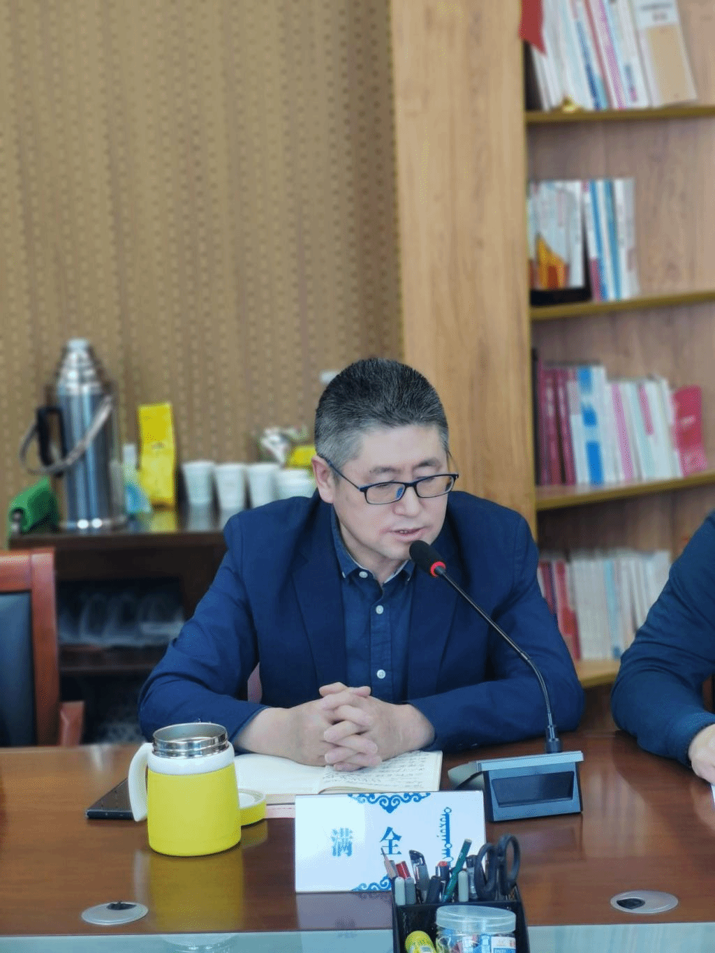 2023年3月17日下午,赤峰学院ac米兰官方网站院长韩长寿、副院长双喜、办公室主任乌仁图雅、就业办负责人明华以及三名学生来米兰官网进行交流座谈。学院党委书记白宝成,院长满全,党委副书记、副院长乌日其木格,副院长聚宝及相关科室负责人参加会议。白宝成主持座谈会。