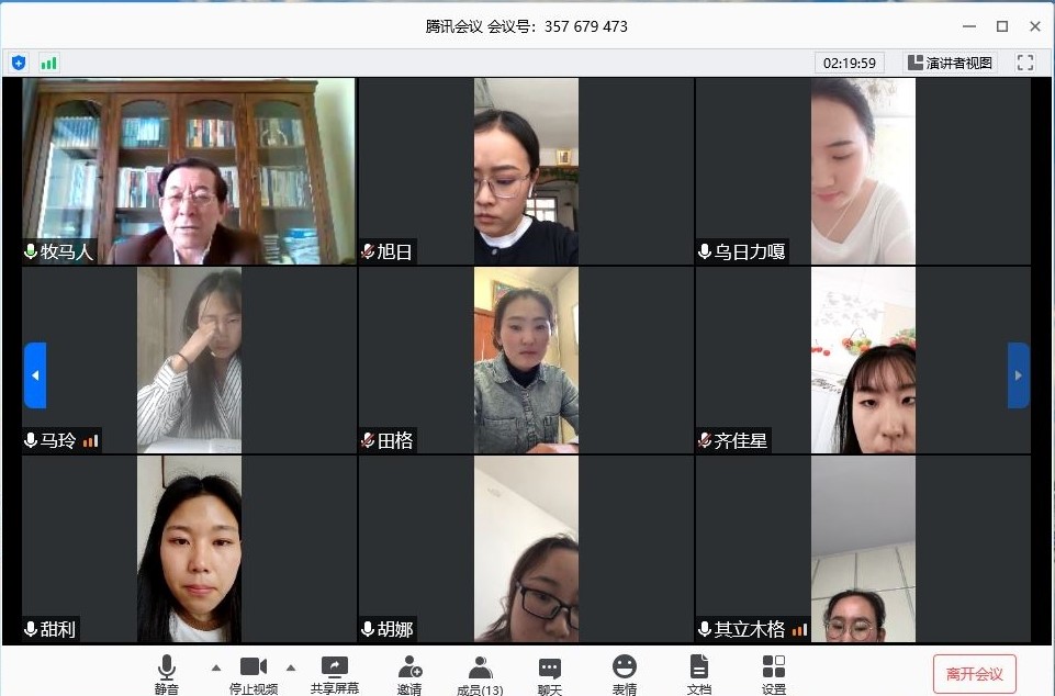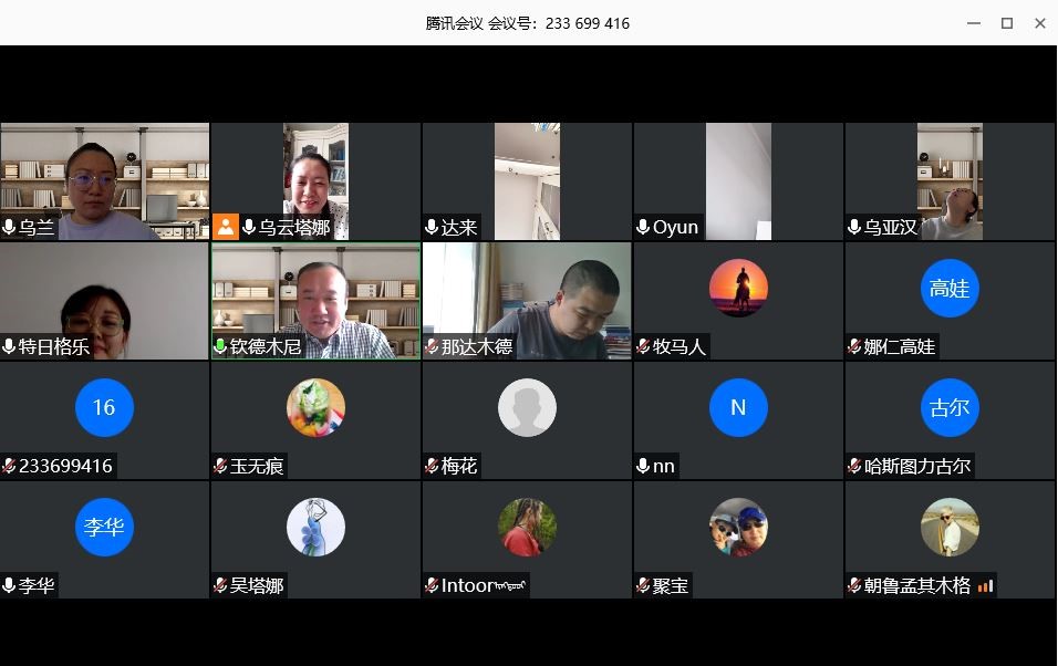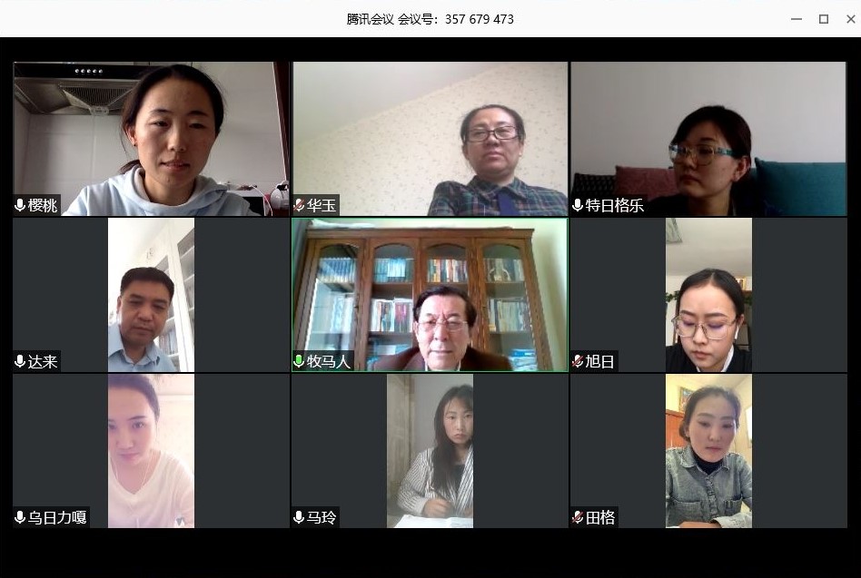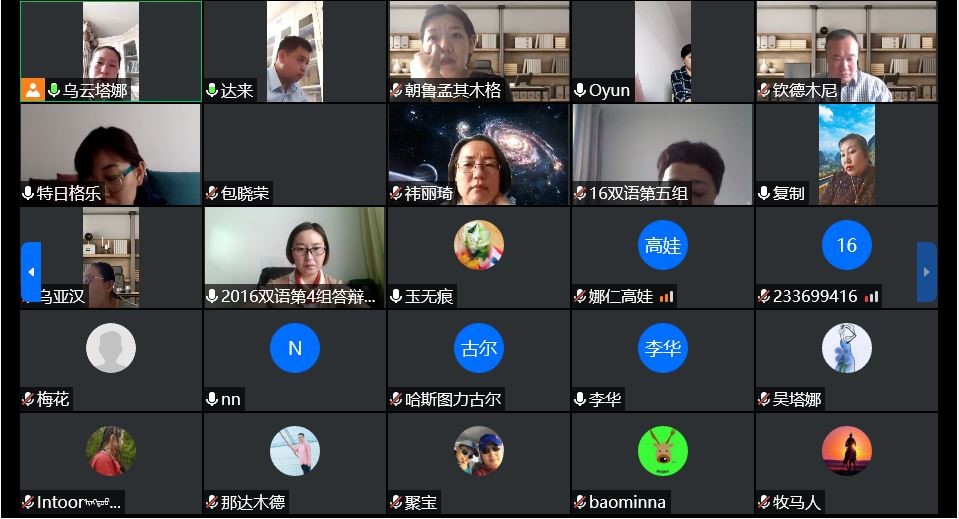 5月12日上午8:00 —— 12:00,根据学校疫情防控期间毕业生相关工作要求,ac米兰官方网站蒙汉双语专业2020届本科毕业生进行在线论文答辩。上午8:00 —— 8:30,答辩委员会全体成员开会,由系主任乌云塔娜主持会议,会议上强调答辩工作的重要性与注意事项。