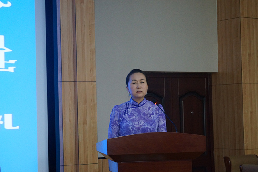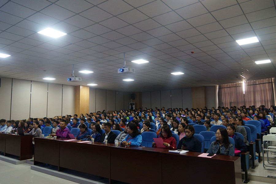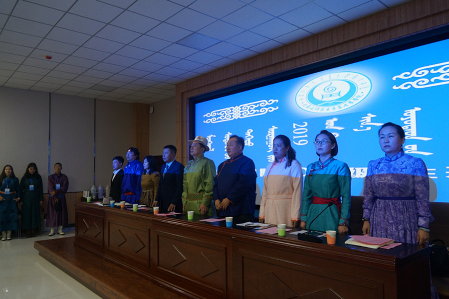 2019年9月14日上午,ac米兰官方网站2019级新生开学典礼在学生事务中心一楼报告厅隆重举行。学院党总支书记白宝成、副院长聚宝、蒙古语言文学系主任元成、翻译系主任、2019级翻译班班主任乌云塔娜、综合办公室主任、2019级蒙古语言文学专业一班班主任包小、教务与科研办公室主任富荣、学生工作与就业办公室主任都日斯嘎拉图、团总支负责人、2019级蒙古语言文学专业三班班主任赵福财、2019级蒙古语言文学专业二班班主任祎丽琦以及包乌云、斯琴图、哈斯图力古尔、乌吉斯古楞、李华、乌兰、朝鲁孟其木格、玛瑙花等老师出席仪式。米兰官网优秀毕业生、内蒙古自治区教学研究室教研员、中学高级教师毕力贡格日勒应邀出席仪式。2019级全体本科生、硕士研究生、博士研究生参加仪式。仪式由学院党总支副书记、副院长乌日其木格主持。